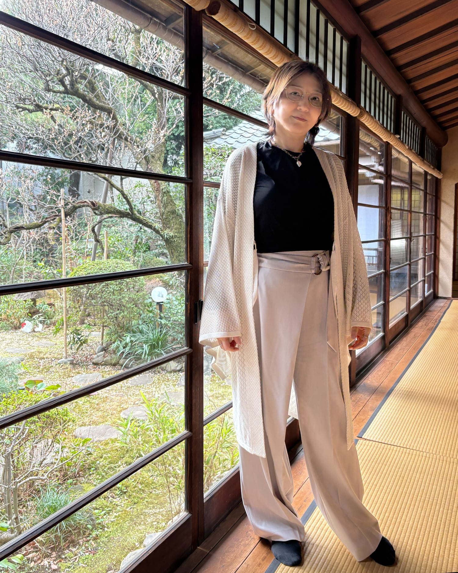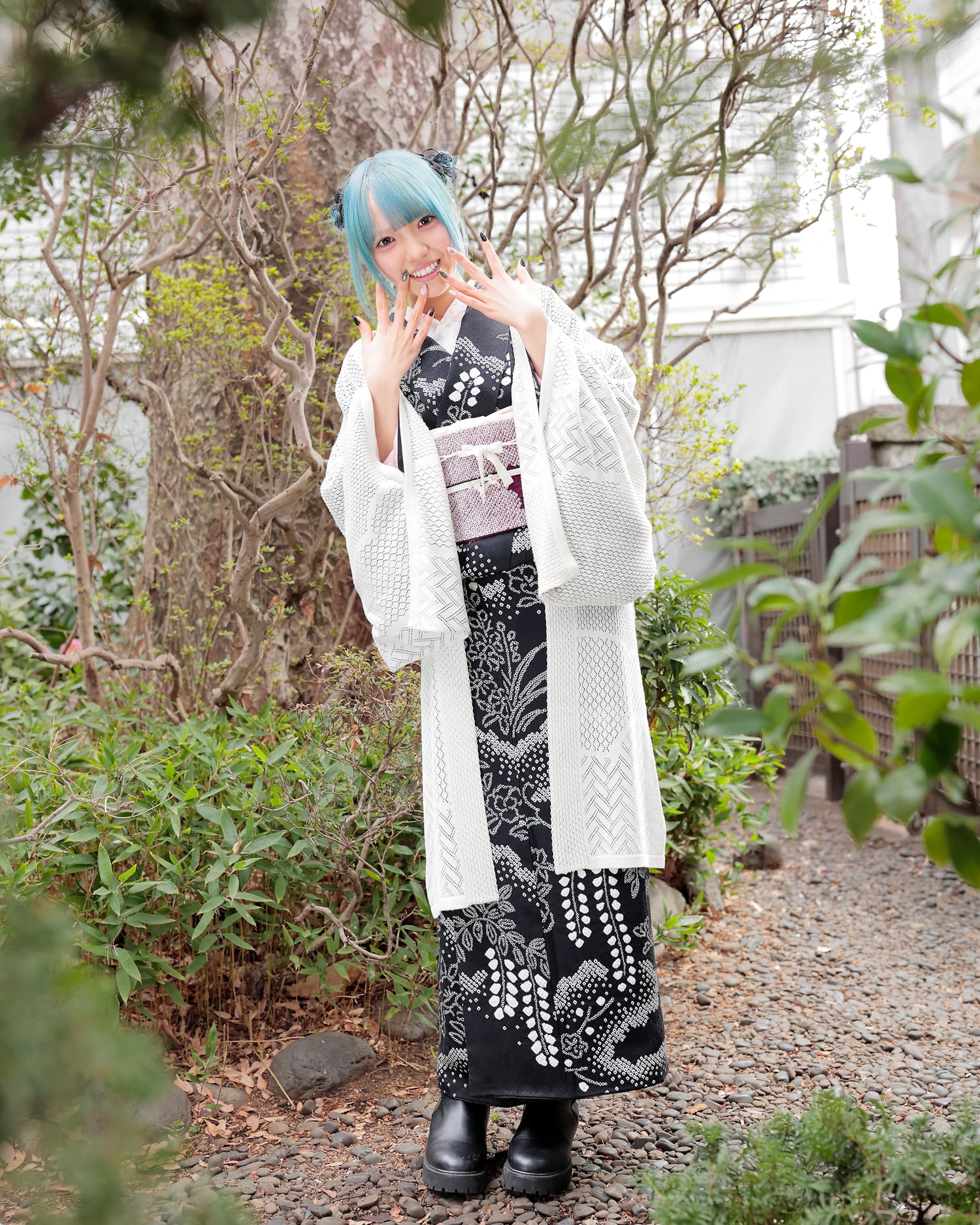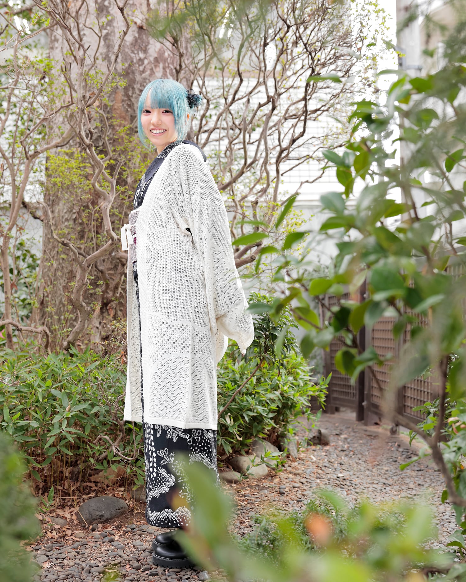 ※モデル:白い着物165㎝、黒い着物161㎝、パンツスタイル161㎝