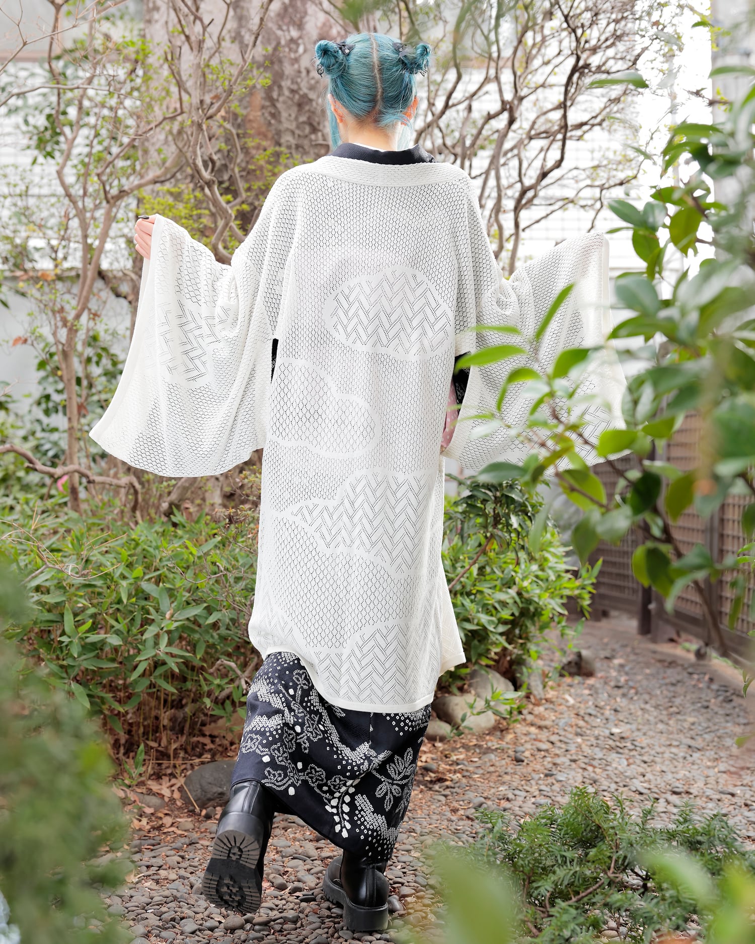 空に浮かぶ雲と、日本の伝統文様である雲取柄から着想を得た羽織です。