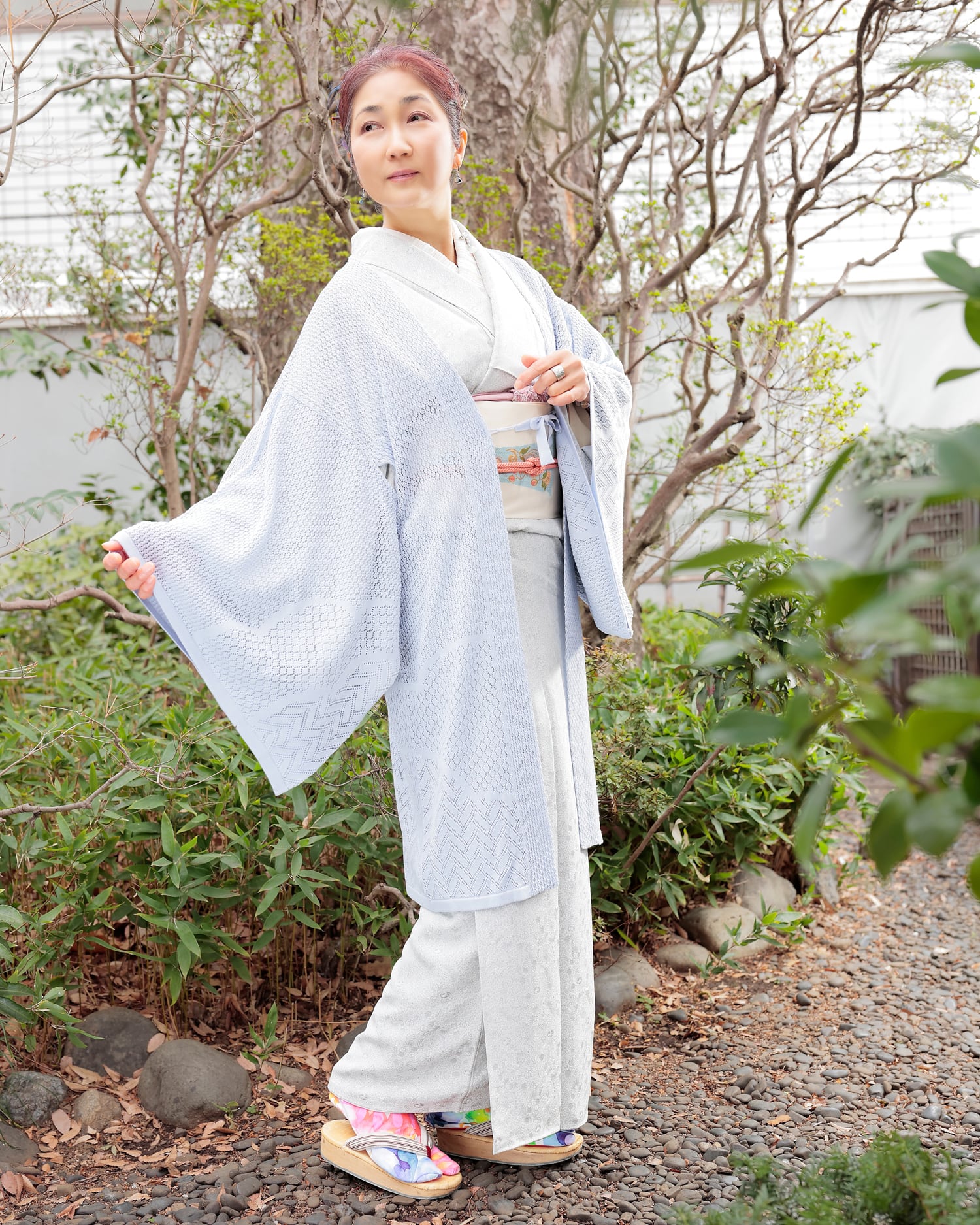 落ち着いたトーンなので着物になじみやすく、装いを軽やかでやさしい印象にしてくれるカラーです。