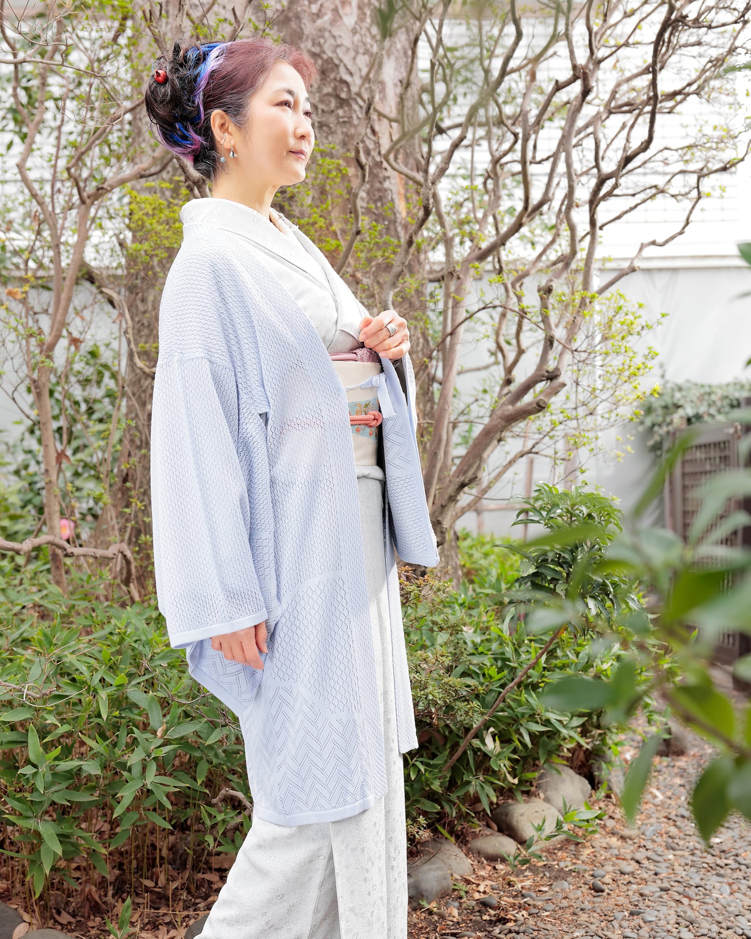 ごわつかず、着物の上に重ねてもすっとなじみます。